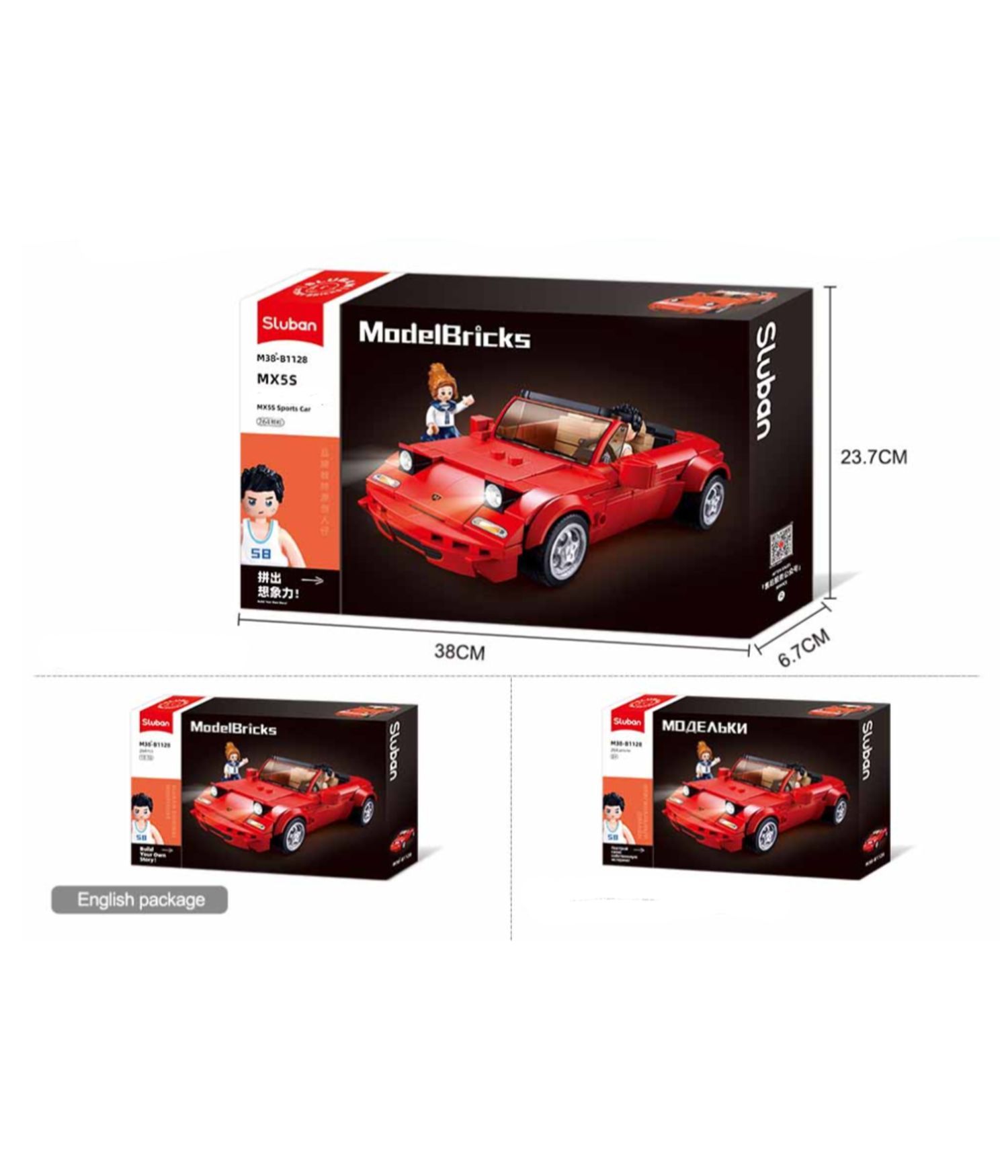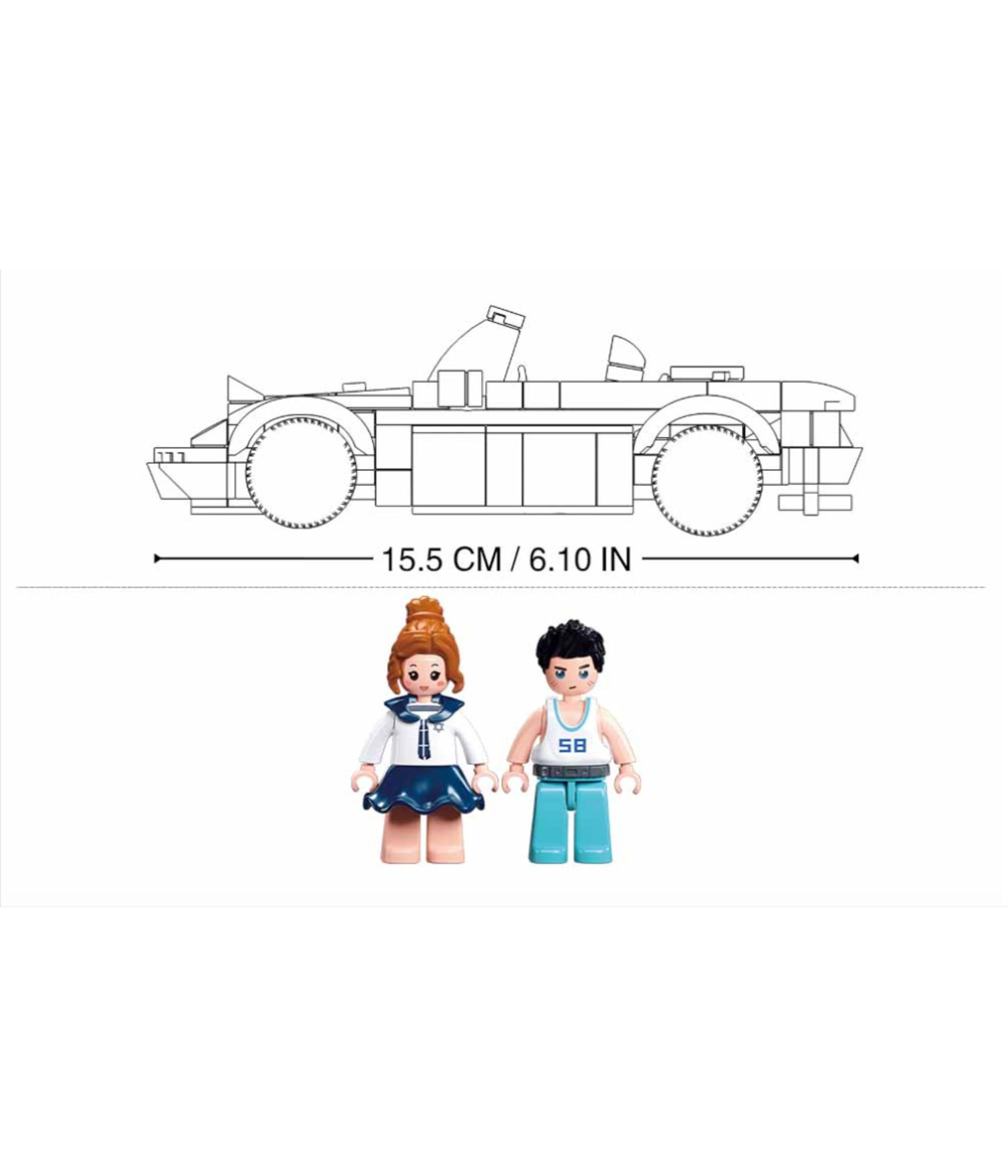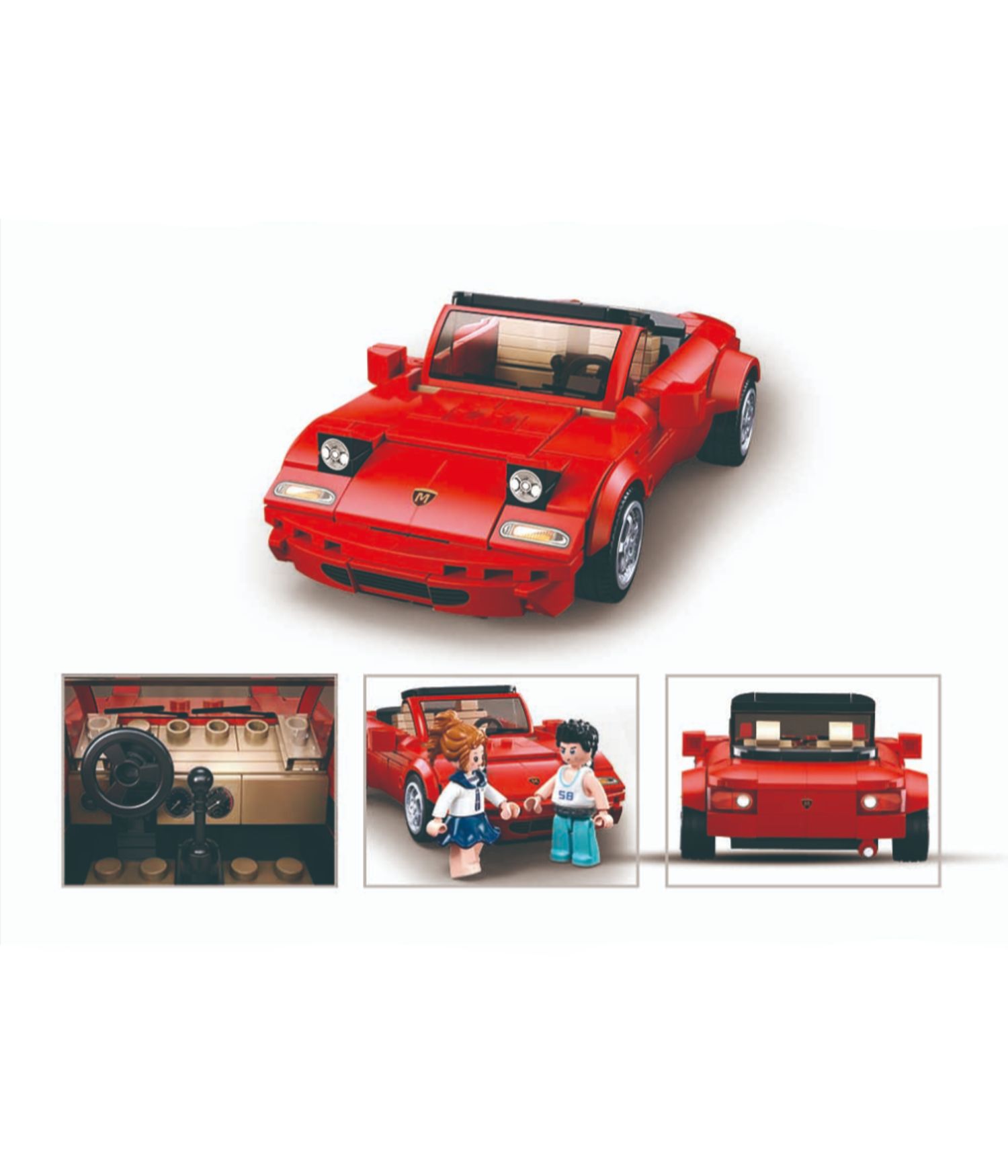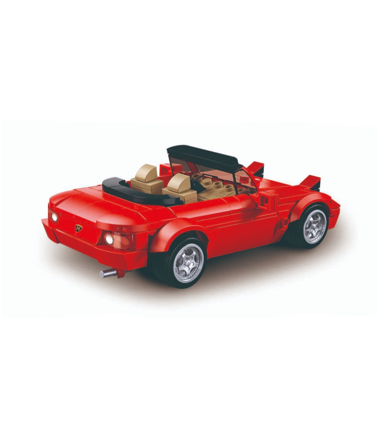 Este es un deportivo descapotable rojo, contiene 264 piezas con mucha entretención para ti y tus amigos y familia. Incluye un chofer y su acompañante.