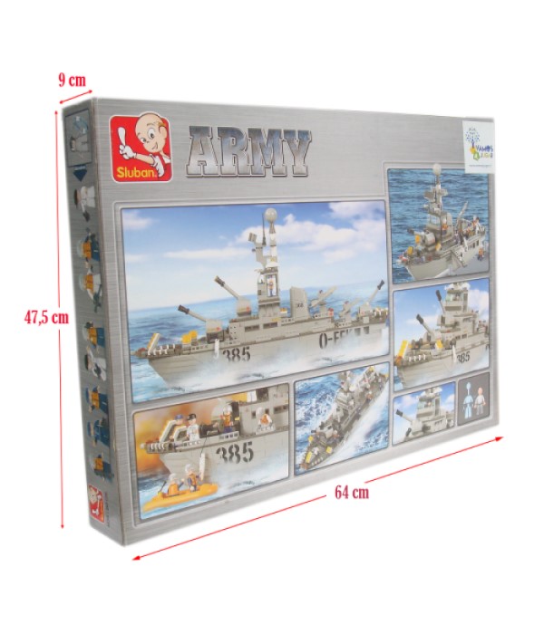 Este Barco de Guerra de 577 piezas permiten armar un espectacular modelo. Con él tendrás un gran poderío naval para combatir en la guerra, incluye la tripulación con ocho personajes, adicionalmente contiene un llavero y una herramienta para separar los bloques. Este modelo de barco de guerra permite a los niños y jóvenes a desarrollar diversas habilidades cognitivas y motricidad fina, además de entregar oportunidades para reunir a la familia y amigos en torno a un juego. Las piezas son compatibles con otras marcas que usan bloque del tipo M38.