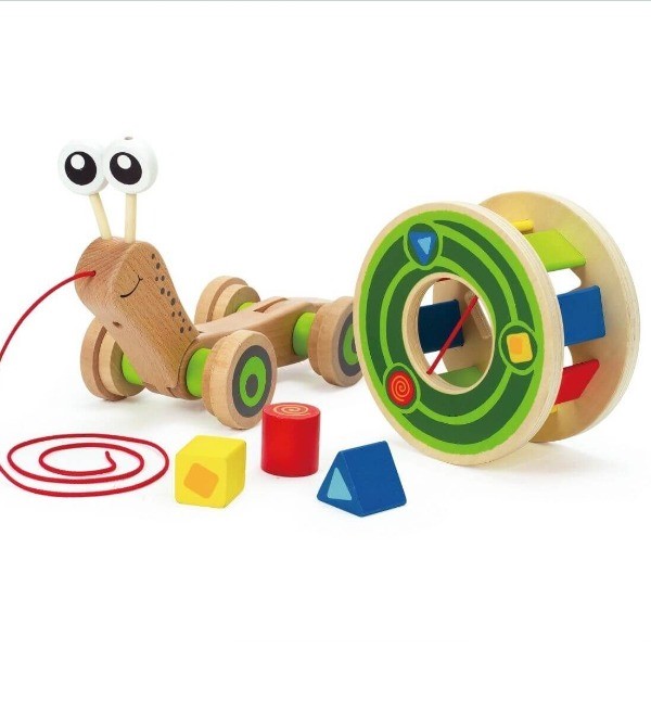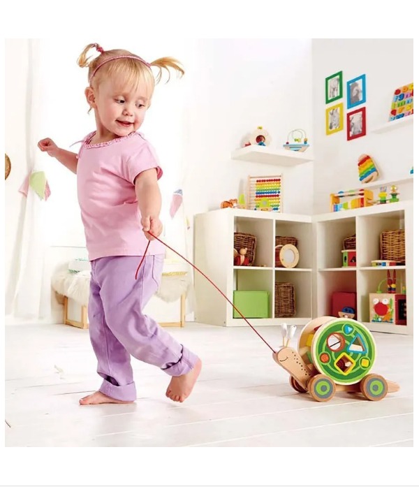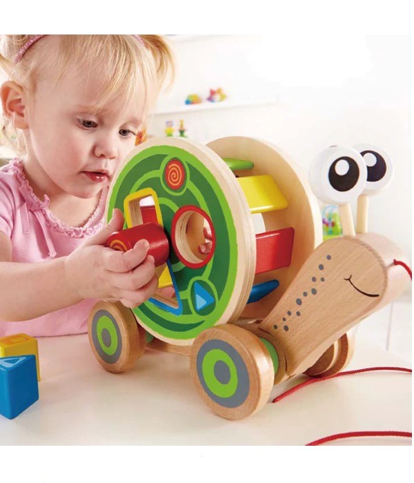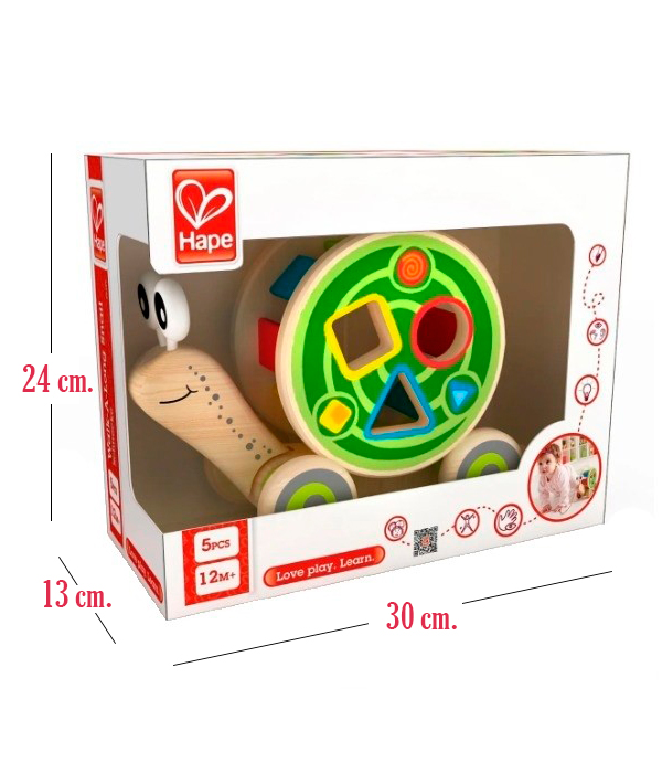 ¡Este pobre caracol tiene una carga muy pesada en su concha llena de bloques de madera! Quítale un peso de encima sacando el clasificador de formas de colores y ya estará listo para rodar solo y sin cargas pesadas que llevar. Es perfecto para que los peques aprendan los colores y las formas. Doble diversión con el caracol y la concha separables. La cola se mueve mientras el caracol anda. Pintura segura para niños y niñas a base de agua. Recomendado a partir de los 12 meses.