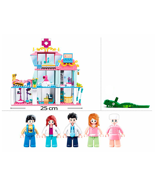 En este centro de salud encontrarás todas las especialidades y el equipamiento necesario que te permitirá resolver todas tus dolencias. Además, cuenta con tres pisos de una muy bella infraestructura, perfectamente habilitados y con personal entrenado en todas las especialidades. Atiende por fonasa e isapres, cuenta con atención de primer nivel. El set incluye 5 figuritas (doctora, doctor, enfermera y dos pacientes), en total son 459 piezas muy entretenido para armarlo con tus amigas. De regalo incluye un cocodrilo que sirve para separar más fácilmente los bloques entre si. Te invitamos a desarrollar tu imaginación y construir tu mundo con nosotros. Este tipo de juguetes beneficia el desarrollo motriz permitiendo que, además de entretenerse, los niños y niñas puedan desarrollar sus habilidades cognitivas. Nuestros bloques de construcción son compatibles con otros bloques de construcción que usen piezas tipo M38.