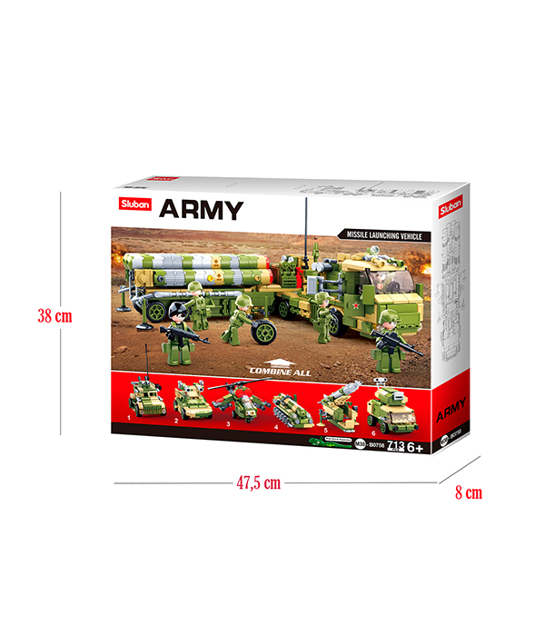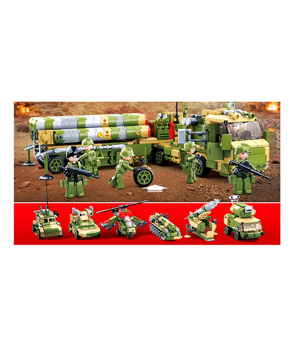Este camión de defensa antimisiles te permitirá derribar todos los misiles que te envíe tu contrincante, es un set de los más completos que tenemos y tiene doble funcionalidad, por un lado con las piezas de este armable, puedes construir 6 diferentes vehículos, tres mini vehículos de guerra, un helicóptero, dos lanzadores de distintos tipos de misiles, por otro lado al usar las mismas piezas se puede armar el camión de defensa antimisiles. Incluye 6 figuritas. En total son 713 piezas para que te diviertas pues forma parte de una serie de armables temáticos de combate, los que te permitirán desarrollar tu imaginación y construir tu mundo, colecciónalos. Estos juguetes benefician el desarrollo motriz permitiendo que, además de entretenerse, los niños y niñas puedan desarrollar sus habilidades cognitivas. Nuestros bloques de construcción son compatibles con otros bloques de construcción que usen piezas tipo M38.