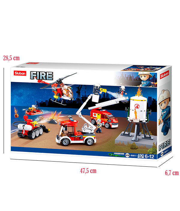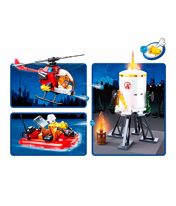 Un completo escuadrón de bomberos. Aquí tienes todas las herramientas para luchar y apagar los incendios por distintos medios, aire tierra y agua, este set incluye un helicóptero, un camión con escalera telescópica, un camión con brazo elevador, un vehículo oruga, un zodiac y un tanque de combustible, además cuenta con 5 figuritas de bomberos listos y dispuestos para entrar en acción. Disfruta armándolas, son 490 piezas para armar junto a tus amigos y tu familia. De regalo incluye un cocodrilo que sirve para separar mas fácilmente los bloques entre si.Te invitamos a desarrollar tu imaginación y construir tu mundo con nosotros. Este tipo de juguetes beneficia el desarrollo motriz permitiendo que, además de entretenerse, los niños y niñas puedan desarrollar sus habilidades cognitivas. Nuestros bloques de construcción son compatibles con otros bloques de construcción que usen piezas tipo M38.