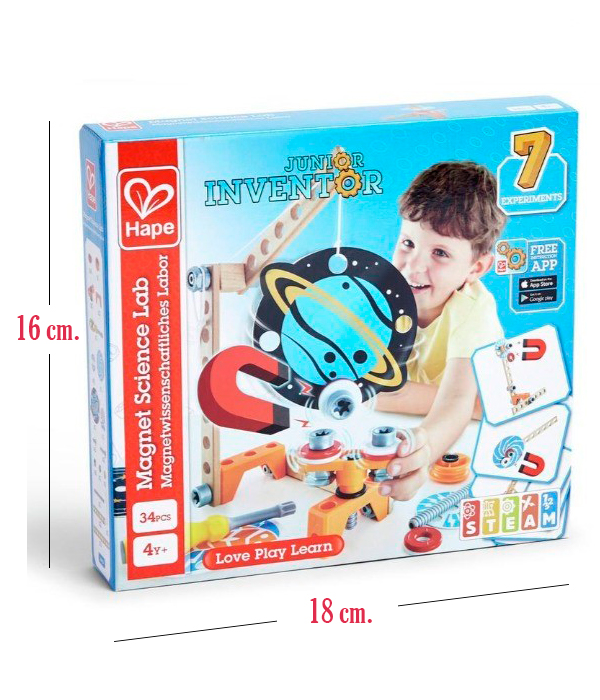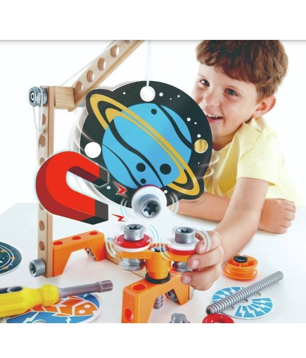 Explora el mundo de la ciencia magnética con este conjunto de siete experimentos. ¡Perfecto para jóvenes científicos e inventores! Incluye instrucciones, herramientas y todas las piezas que necesitas para crear siete experimentos magnéticos que incluyen un imán de gravedad, un imán de equilibrio, un imán rebotador, un planeta giratorio, un pez mágico, una pesca magnética y un remolino magnético. Incluye 4 imanes, 1 bloque de 1 orificio, 2 bandas de 7 orificios, 1 banda de 9 orificios, 2 tornillos largos, 6 tornillos cortos, 6 tuercas, 6 tapones, 1 eje, 1 cuerda, 2 soportes de base de 3 orificios, 1 rotor de 3 orificios, 1 rueda pequeña, 4 gráficos impresos, 1 pez de papel, 1 destornillador Philips. Excelente para desarrollar la creatividad, el pensamiento lógico y la comprensión de la ciencia, la tecnología, la ingeniería, el arte y las matemáticas (STEAM). Recomendado para niños de 4 años o más.