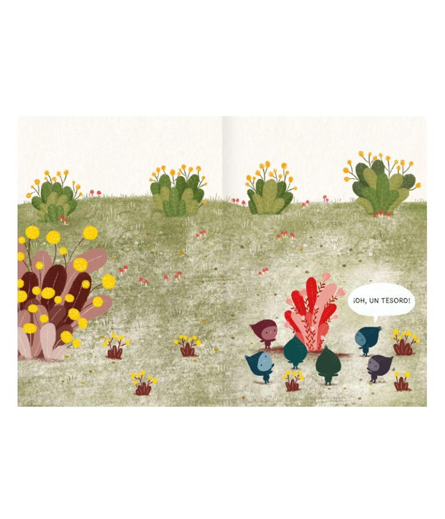 Pasear por la naturaleza siempre es una invitación a mirar lo que nos rodea con ojos de exploradores, en un bosque, una playa o incluso en el parque de una gran ciudad. Escondidos en el paisaje hay tesoros que esperan ser encontrados: hojas, plumas, semillas, caracoles. Nuestra tierra acuna muchos tesoros y esta historia contagia las ganas de salir a buscarlos. Pasar tiempo al aire libre, escuchar, sentir y observar nuestro entorno natural sin perder la capacidad de asombro. En este libro aparecen unos pequeños seres que promueven el deseo de seguir explorando. La protagonista descubre un tesoro y se pregunta ¿de dónde viene? ¿Cómo llegó hasta ahí? ¿Alguien más lo encontrará?