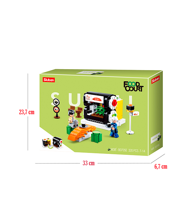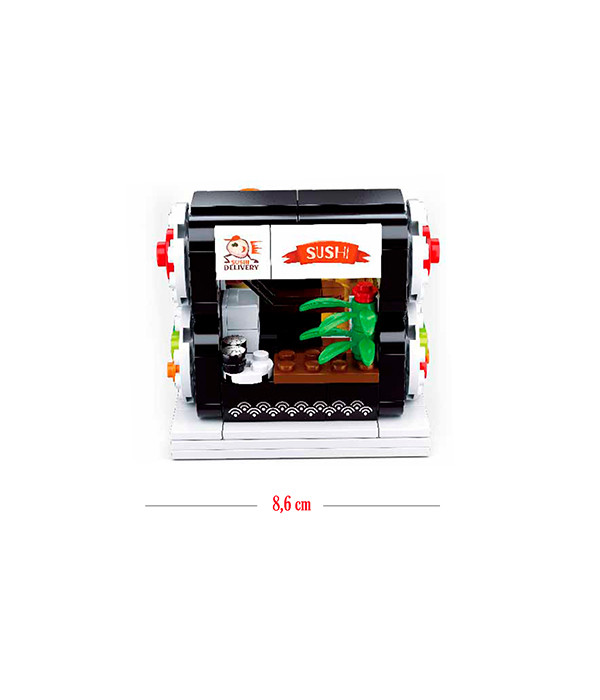 ¿Te gusta la comida japonesa?, arma este entretenido puesto de sushi armable de 320 piezas el que forma parte de una colección de tiendas, coleccionalas y arma tu centro de comidas. Incluye dos figuritas, el cliente y el dueño de la tienda. Se pueden girar los lados de la tienda de manera de jugar dejándola como un kiosko o bien como una tienda abierta para estar ubicada en una terraza de comida, ármala junto a los tuyos con sus 320 piezas. Desarrolla tu imaginación construye tu mundo. Este tipo de juguetes beneficia el desarrollo motriz permitiendo que, además de entretenerse, los niños y niñas puedan desarrollar sus habilidades cognitivas. Nuestros bloques de construcción son compatibles con otros bloques de construcción que usen piezas tipo M38.